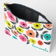 Personalised accessory bag with a bright, colourful and pretty flower pattern in summery colours on a white background.