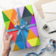 Cool and fun geometric pattern made from many different coloured triangles - yellow, orange, red, blue, green, pink, brown...