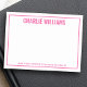 Modern sticky notes with your name and custom text in bold fonts and a thick border. Bright pink text on a white background. You can change all colours, move and resize elements with the design tool.
