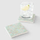 The coasters are gorgeous, a quality feel and heavy weight. They look like a precious archeological find. A rustic stone juxtaposed with a modern floral black and white print. I like the way the print goes slightly imperfect on the cut stone edges giving them a kind-of natural beauty.