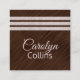 Modern stylish square business card done in a brown on brown design, on the front and solid blush, on the back. Graphics of three blush glitter looking bands run across the front top of the card. Personalise the text to suit your business needs. A lovely stand out card for her.