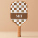 Modern Brown and White Chequered Initials Monogram Pickleball Paddle