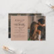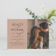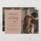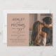 This beautiful, modern Calligraphy Typography 2 Photo Engagement Party Invitation features a modern calligraphy script and modern all cap sans serif font invitation design on the front, over a trendy neutral brown background, and with your vertical / portrait orientation photo on the right. The back of the invite features your full-bleed horizontal engagement photo. A beautiful invite!