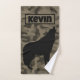 This bathroom towel set features a modern brown camo pattern with a bold black wolf silhouette. Each towel is personalised with a monogram, adding a rugged and unique touch to your bathroom decor. Combining both style and functionality, these towels offer a distinctive, masculine flair while providing softness and absorbency for everyday use.