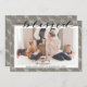 Modern Brown Grey Chic Script BLESSED Minimalist Photo Holiday Card. Send customisable and personalised holiday greetings to friends, colleagues and family in simple, chic, elegant and modern photo design festive, natural minimalist style cards! A beautiful calligraphy of " blessed " frames your photo in front. Below photo features your custom greeting message from your family name in modern typography. Reverse to reveal a reindeer in brown grey burlap texture background.