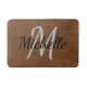 Modern Brown leather Typography & Name Monogram Bath Mat