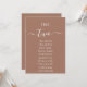 Modern Brown with White Script Seating Chart Card