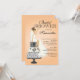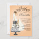 Start off your elegant bridal shower off right with our trendy Brunette bride bridal shower invitation featuring a classy Blonde bride sitting on a stylish damask 3 tier wedding cake set on a autumn orange fall pumpkin orange background. Just customise our invitation with your wedding shower information and you're all set to go. ©JW Illustrations