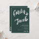 A modern, bold and elegant wedding invitation with custom names with a hand written marker brushed calligraphy in dark green and white. All the text, names and background colours are customisable. A simple and minimalist invitation. Add your qr code for an all in one wedding invite with rsvp, details and more info.