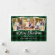 Modern Brush Script 3 Photo Christmas Green Plaid Holiday Card