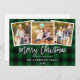 Modern Brush Script 3 Photo Merry Christmas Family Card - Green Plaid