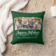Modern Brush Script 3 Photo Happy Holidays Green Pillow
