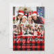 Modern Brush Script 4 Photo Christmas Red Plaid Holiday Card