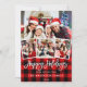 Modern Brush Script 4 Photo Holidays Red Plaid Holiday Card
