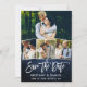 Modern Brush Script Blue Wood 4 Photo Couple Save The Date