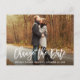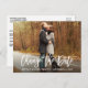 Modern Brush Script Change The Date Wedding Postponed New Date Announcement Couple Photo Postcard