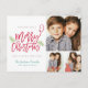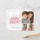 Modern Brush Script Christmas Holiday 3-Photo Postcard