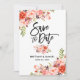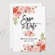 Modern Brush Script, Watercolor Coral Floral, Save The Date Engagement Card