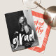 Invite guests to celebrate the grad with our photo graduation party invites! The modern graduation party invitations feature the graduate's photo with "grad" in a white brush script overlay. Personalise the front of the photo graduation party invitation by adding the graduate's name, school name, and graduation year. The invite reverses to display your graduation party details with a coral and white brush stroke background.