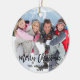 Modern Brush Script Family Photo Merry Christmas Ceramic Ornament