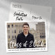 Stylish, modern graduation party invitation postcards featuring the graduate's photo framed in white with "Class of 2025" in a white, watercolor brush script overlay. Personalise the front by adding the graduate's name and school name in black text. The invite reverses to display your return address and graduation party details in black text.
