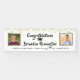 Gold confetti and CONGRATULATIONS (graduate's name) in a brush script font in black against an editable white background you can change to coordinate with school colours or your graduation party colour scheme or decor. Honour and celebrate the graduate and welcome party guests with this banner sign featuring two photos of the graduate for a young man or woman. Personalise it with their name, school and graduation year or whatever text you desire. PHOTO TIP: For fastest/best results, choose a photo with the subject in the middle and/or pre-crop it to a square shape BEFORE uploading and it will fill in the photo space provided perfectly. Contact the designer if you’d like this design modified, on another product or would like coordinating items