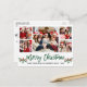 Modern Brush Script 5 Photo Family Photo Collage Merry Christmas Postcard includes Watercolor Christmas Holly Berries - Green Script