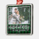 Modern Brush Script Green Plaid Married and Merry Metal Ornament
