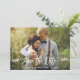 Modern Brush Script Save The Date Engagement Couple Photo Card - White Script with Leaves