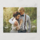 Modern Brush Script Save The Date Engagement Couple Photo Postcard - White Script with Leaves