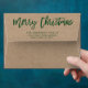 Modern Brush Script Merry Christmas Kraft Green Envelope