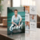 Modern brush script Graduation Announcement with 4 photos, simple and unique. Custom it with your own photos and grad party information.