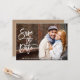 Modern Brush Script Save The Date Engagement Announcement Photo Card - White Script, Kraft Back