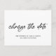 Modern Wedding Postponement Announcement Postcard featuring a simple design with the words, "change the date" in a black brush script handwriting font over a white background. The backside has your personal message and return address for easy mailing. An elegant minimalist design to announce that your wedding has been postponed.