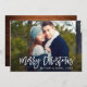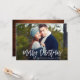 Modern Brush Script Merry Christmas Photo Card - Rustic Wood Back
