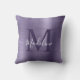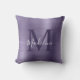 Modern Brushed Metallic Purple Monogram Throw Pillow
