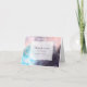 Modern wedding thank you card featuring brush painted contemporary art in purple, turquoise blue, and blush pink with a white frame in the middle. It says "Thank you" inside the frame along with the couple's names. There already is a default message inside the card that's editable.