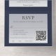 Keep it stylish and simple with this Navy Blue Modern Brushstroke Photo Wedding All in One Invitation — perfect for budget weddings without compromising on elegance. Featuring your couple’s photo framed by a soft brushstroke overlay, this design blends personal charm with a clean, modern aesthetic. The bride and groom’s names and wedding details are beautifully displayed in a mix of elegant script and modern typography on a crisp background. The matching RSVP card includes a scannable QR code for quick digital responses, making planning easier for both you and your guests. Ideal for modern weddings that value simplicity, function, and a personal touch.