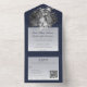 Modern Brushstroke Photo Wedding | Navy Blue All In One Invitation
