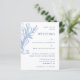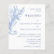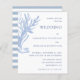 Create budget wedding invitations for beach events that feature a modern blue and white design that is decorated with watercolor seaweed painting on the front side and the striped pattern on the backside. It's a lovely idea for the coastal and under the sea theme weddings. Use the template to personalise the wedding invitations with your names, location, and place.