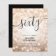 Elegant Glam Rose Gold Glitter Lights 60th Birthday Script invitation template featuring sparkling lights and modern typography script.