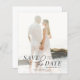Save the Date Budget Wedding Announcement. Modern thin casual handwritten script accent over full-bleed photo with optional white transparency layer to create a soft vellum look. Completely versatile do-it-yourself style layout. Easy edit template -- click "Customise further" to change the size, colours, and placement of all elements.