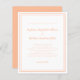 Elegant and trendy budget wedding invitation features a simple contemporary minimalist design with a double frame border in peach colour on a crisp white background. Traditional wording provides timeless yet modern sophistication. Personalise wedding design with your details in chic peach lettering and script. The back of the card matches in solid peach.