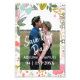 Trendy affordable photo wedding save the date (ENVELOPES NOT INCLUDED) with pastel colourful hand drawn flowers pattern and chic typography script. ++++++++ Suitable for spring or summer outdoor garden backyard, barn or farmhouse budget wedding announcements. +++++++++ Easy to personalise with your photo and details! PLEASE NOTE that is a budget THINNER paper alternative to normal cardstock save the dates. You can upgrade to a card variant by transferring this to another product. Ask ZAZZLE'S FREE DESIGNER SERVICE for help!
