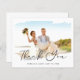 This is a budget friendly modern and stylish photo wedding thank you card using an elegant handwritten script font, printed on a paper sheet.
