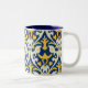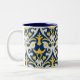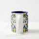Modern buff yellow blue ikat tribal pattern Two-Tone coffee mug