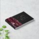 This elegant wedding guest book features a burgundy watercolor agate design trimmed with faux gold glitter. Easily customise the real gold foil text on an off-black background, with the names of the couple in whimsical handwriting calligraphy over a large grey ampersand. Add additional text of your choice to the front and spine.