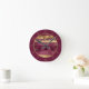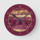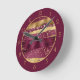 Modern burgundy and gold brush strokes with border Round Clock. It showcases modern brush strokes in gold foil and burgundy and a burgundy border with gold numbers.