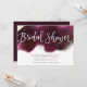 Modern and elegant bridal shower invitation template card featuring a burgundy watercolor ombre in the background with faux gold glitter with a white hand lettered script that says Bridal Shower.
