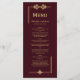 A modern burgundy wedding menu featuring a stylish gold faux glitter border.